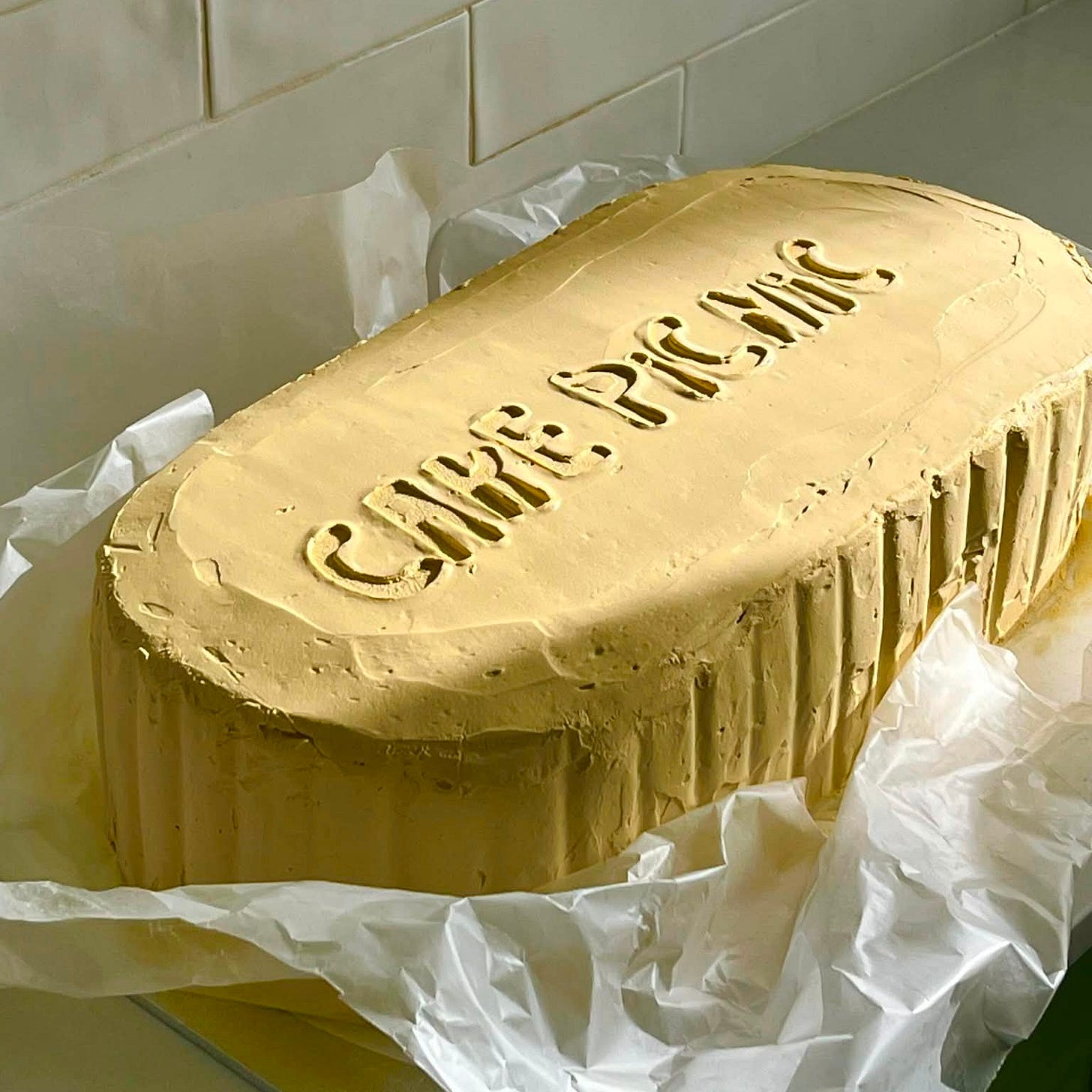 In that post, I had said “I just hope all that buttercream didn’t melt in the sun.” A year on, I was still hoping. In planning for the event, all I could think about was how many hundreds of kilos of butter would be required across all attendees (my guess is around two tonnes). And then, being Melbourne in March, how crushing it would be to see all those perfectly frosting cakes melting into obscurity. And so I landed on the “Butter” cake. A cake that pays homage to the creative direction of current day beauty standards, to the French artisans who have created an epicurean attraction to rival the Eiffel Tower, to the mountains of butter that bring the event to life, and to the likelihood of a melted cake, in which mine would look the part.